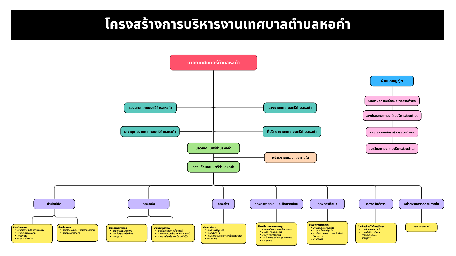 กำหนดโครงสร้างส่วนราชการและอำนาจหน้าที่ความรับผิดชอบของเทศบาลตำบลหอคำ ไว้ดังนี้